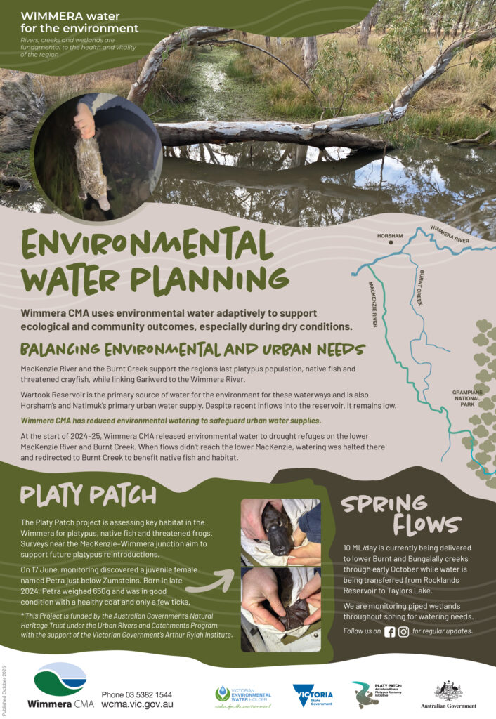 Wimmera CMA uses environmental water adaptively to support ecological and community outcomes, especially during dry conditions.